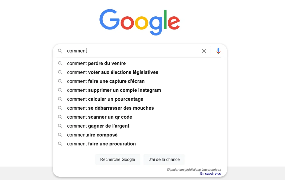 Exemple de recherche avec la requête « Comment … » dans le moteur de recherche Google