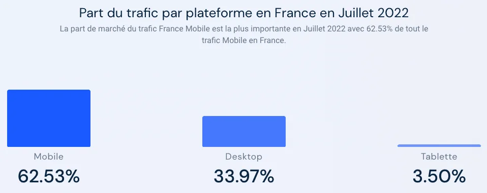 Part de trafic par appareil en France en juillet 2022 (Source : Similarweb)